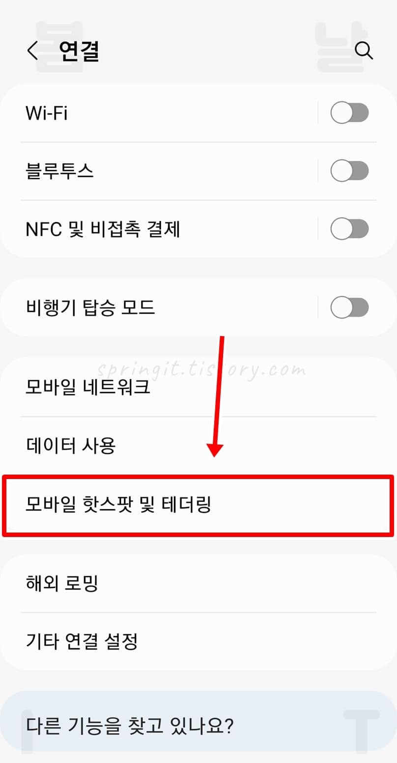 3. 모바일 핫스팟 및 테더링을 누릅니다.