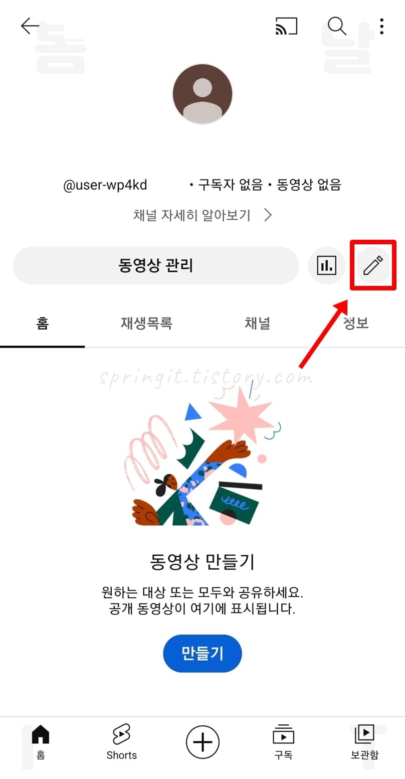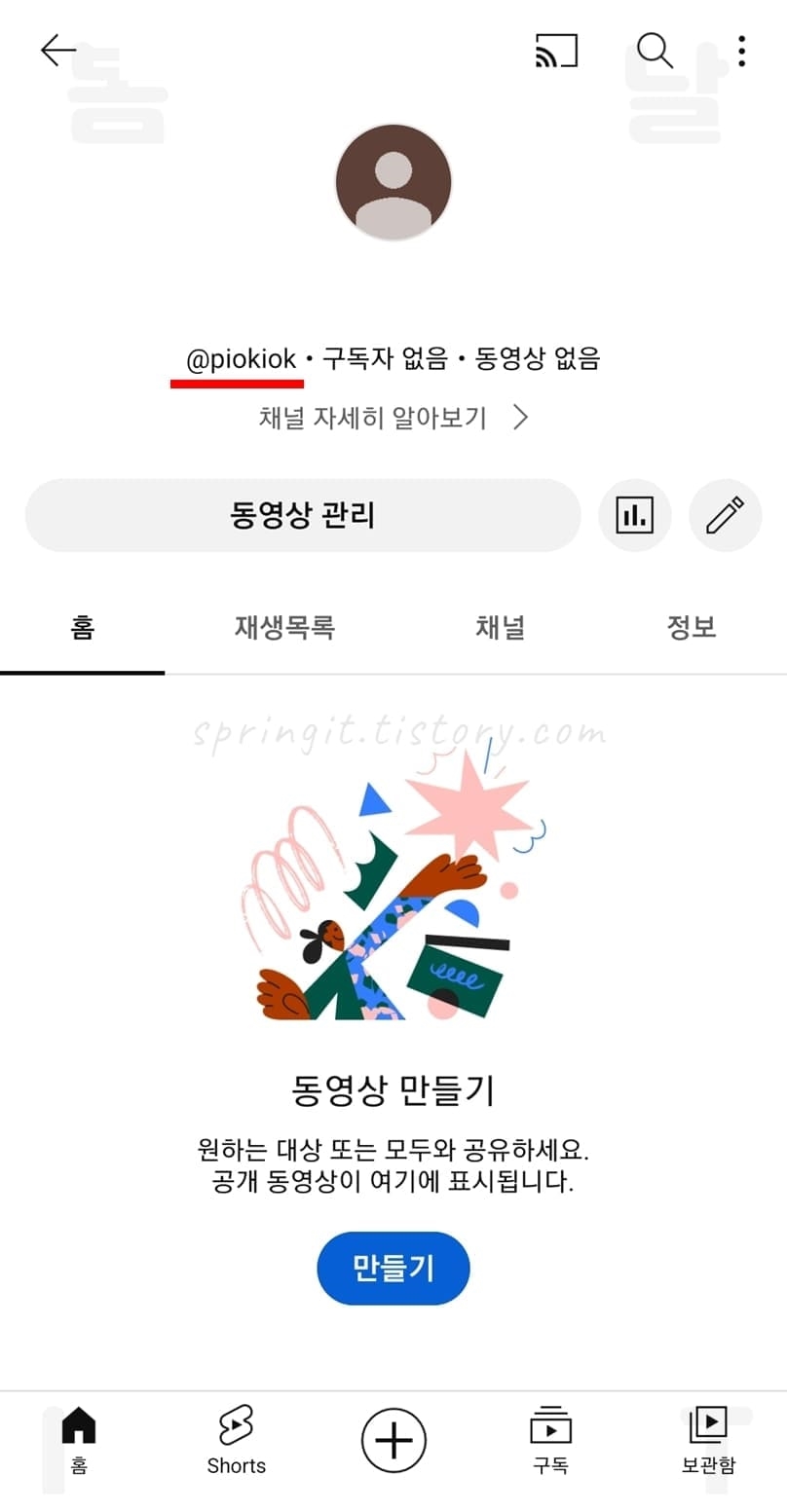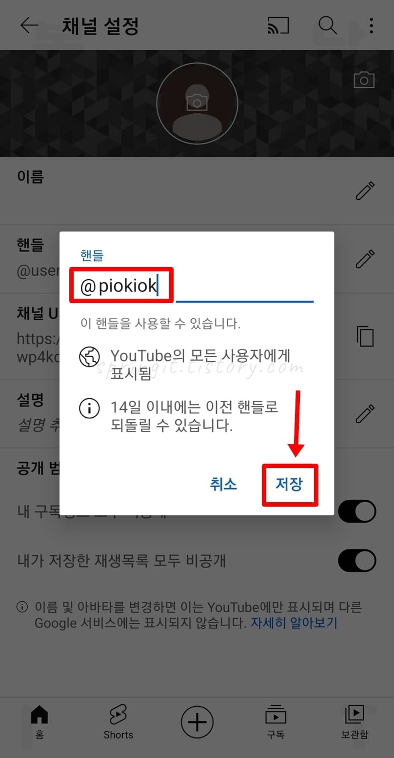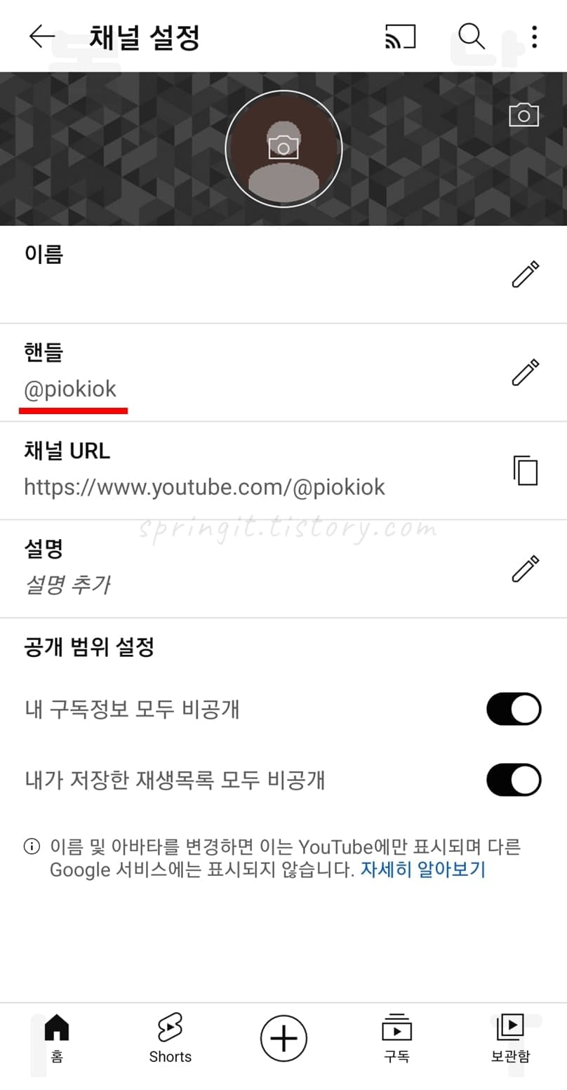 모바일에서 유튜브 @아이디 변경 방법