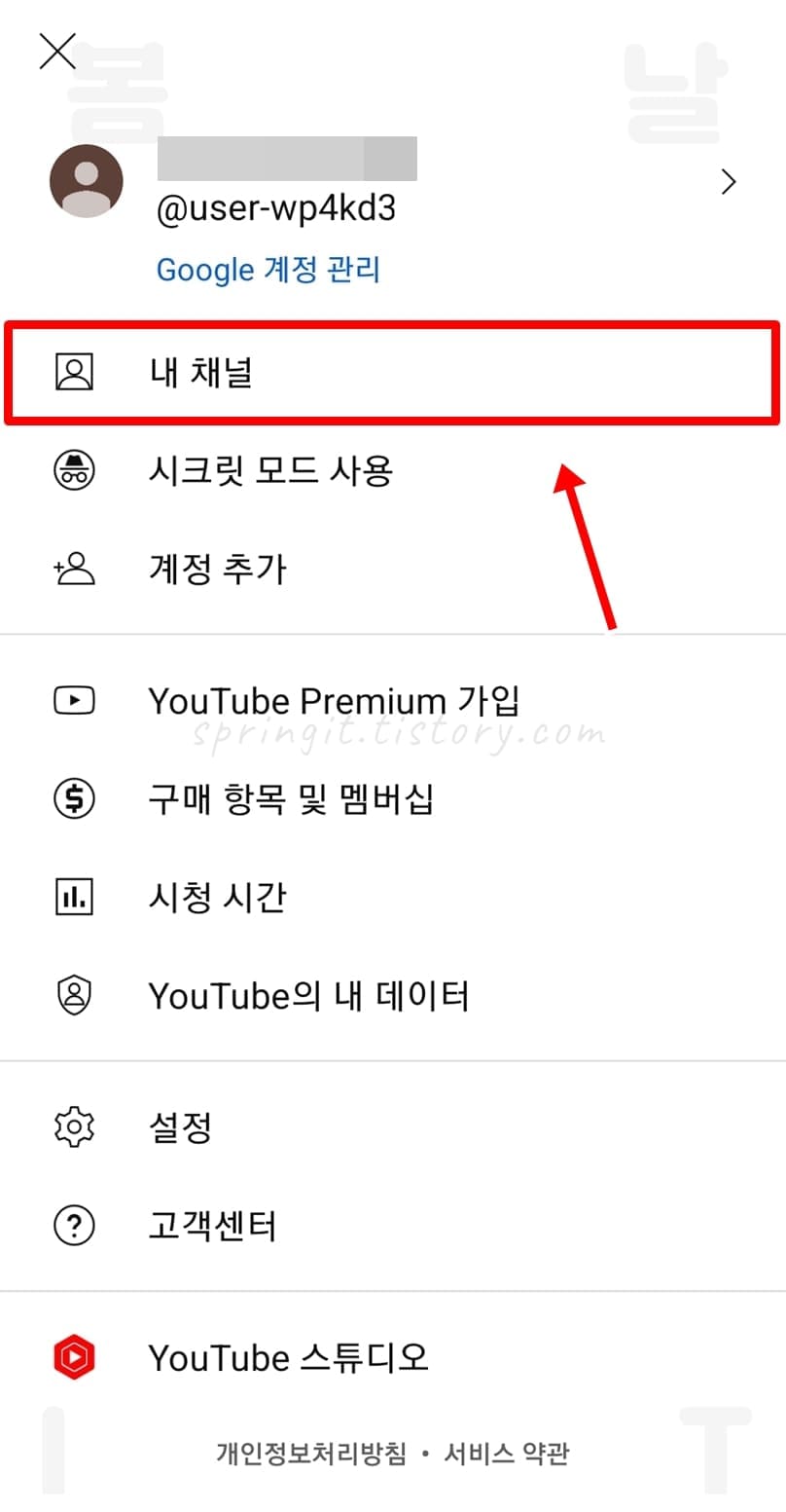 3. 내 채널을 누릅니다.