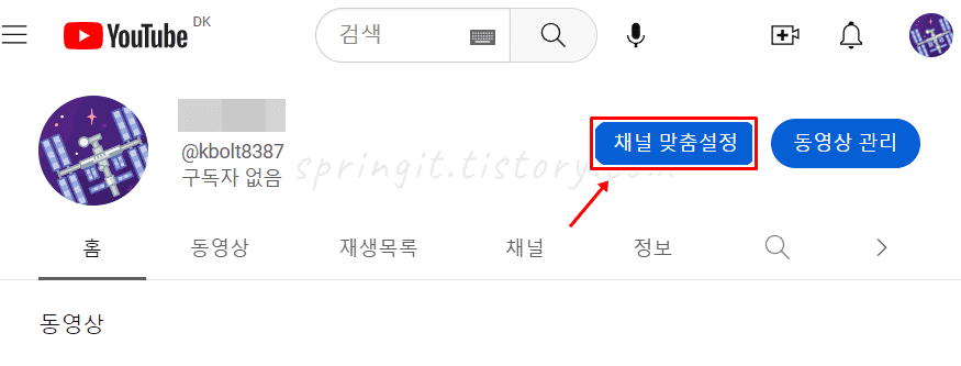 3. 채널 맞춤설정을 누릅니다.