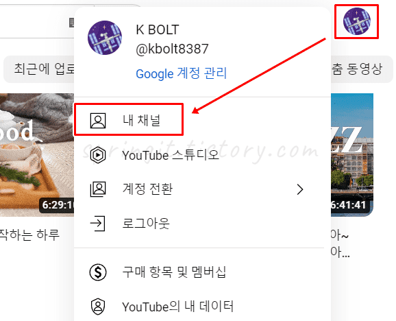 2. 내 채널을 클릭합니다.