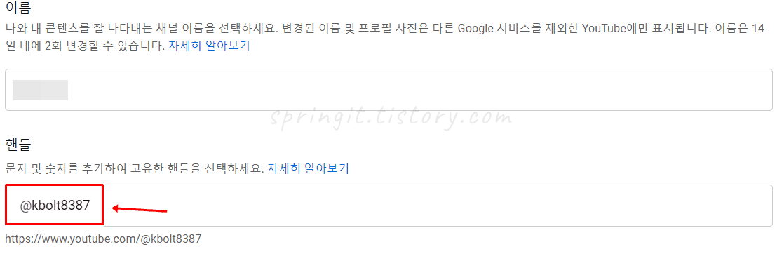 7. 유튜브 @아이디 핸들이 변경되었습니다.