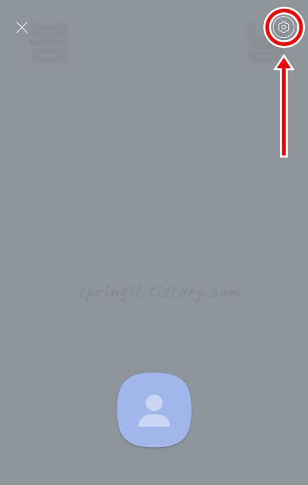 1. 카톡 앱에서 우측 상단 톱니바퀴 버튼을 클릭하세요.