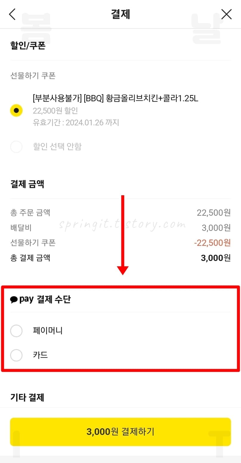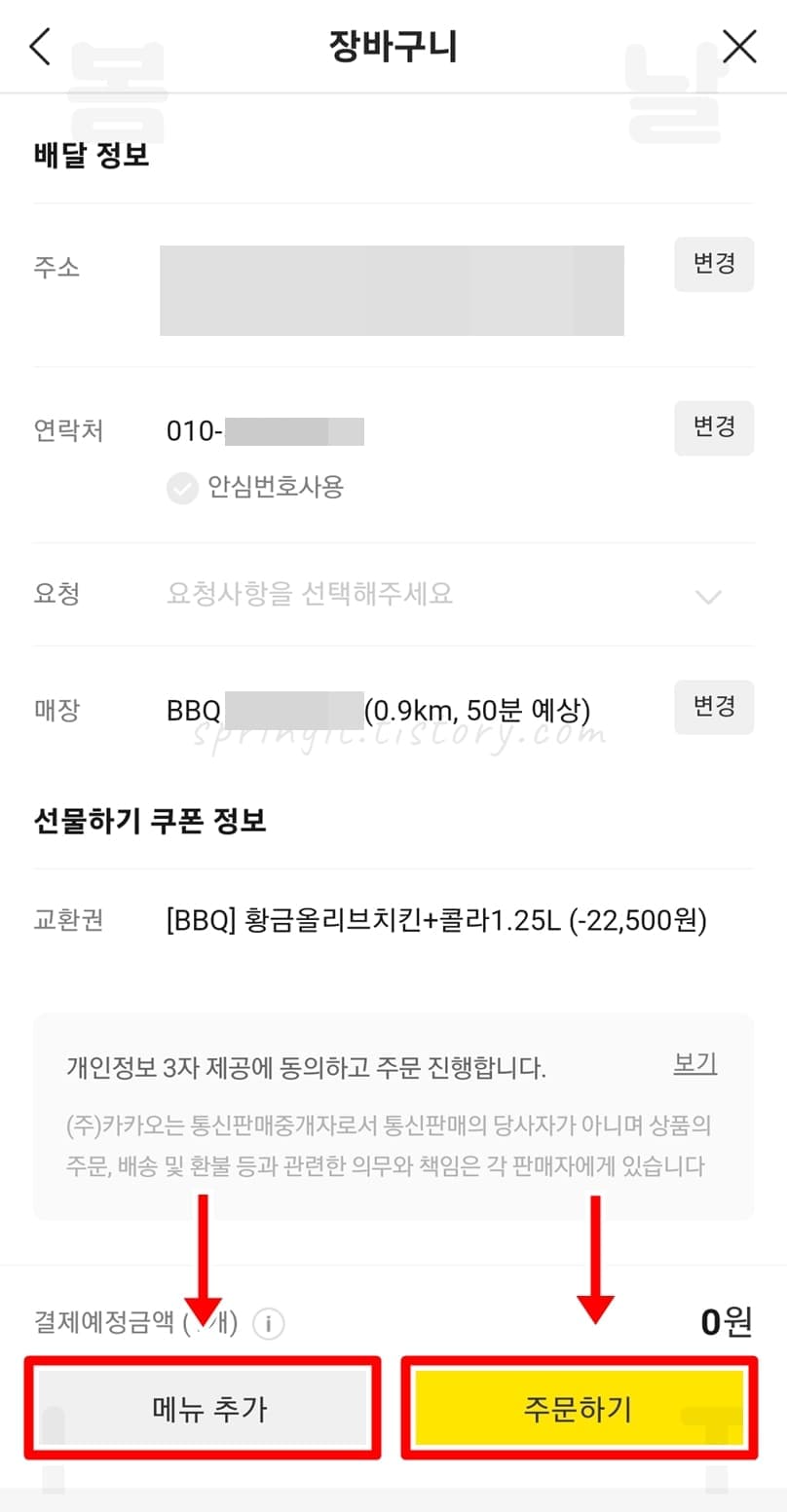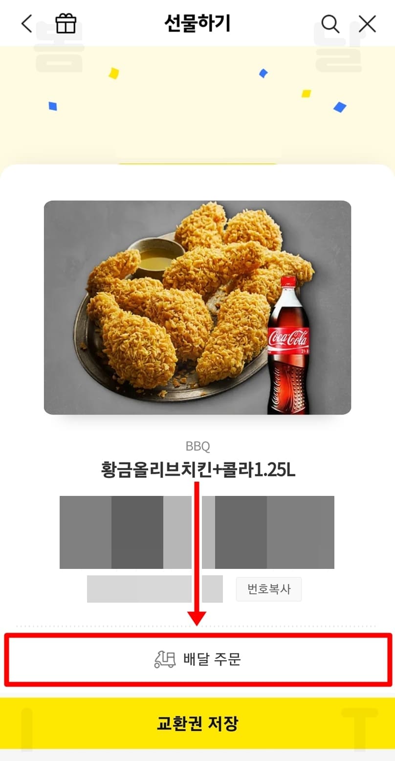 카카오톡 BBQ 기프티콘 주문 방법