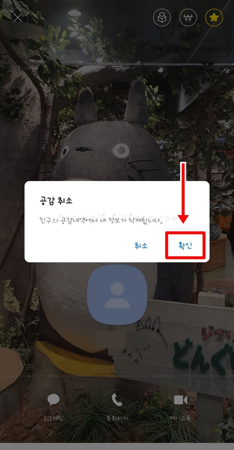 3. 공감 취소 팝업에서 확인을 클릭해주세요.