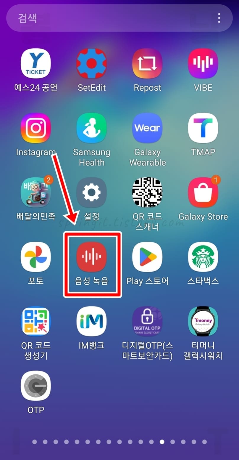 1. 갤럭시에서 음성 녹음 앱을 켜주세요.