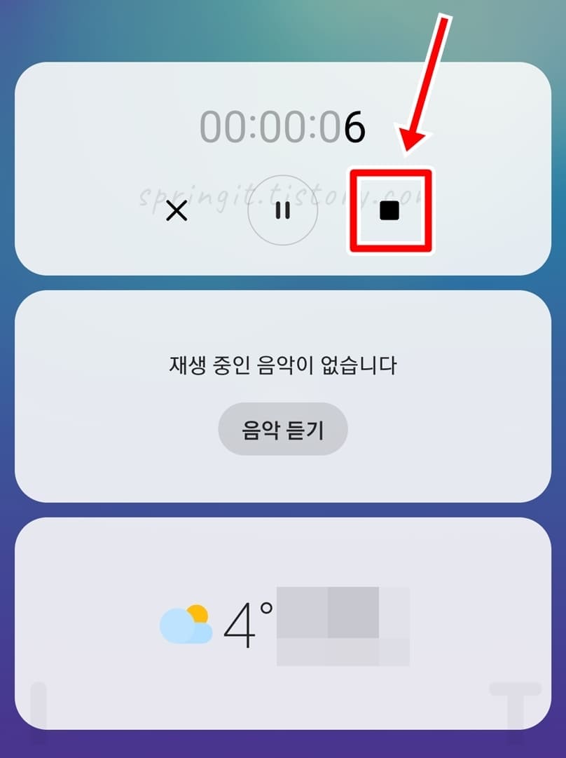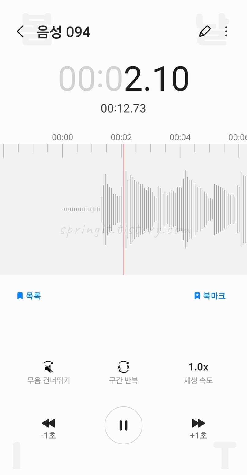 x버튼을 누르면 음성녹음이 꺼지고, ll버튼을 누르면 음성녹음이 임시 중지됩니다. 참고로 음성 녹음 위젯에 보여지는 숫자는 현재 녹음 시간입니다.