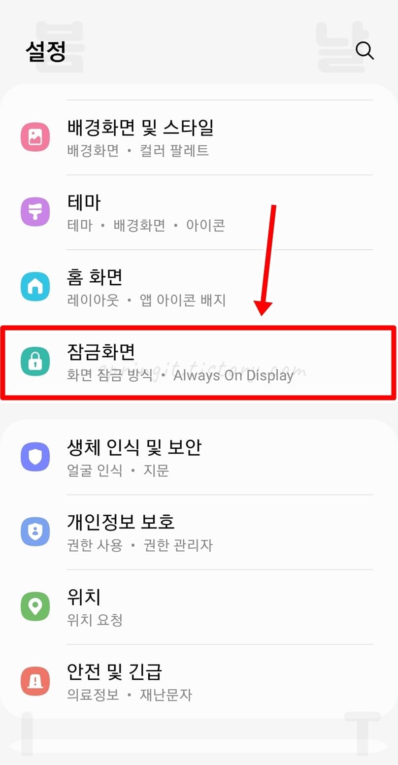 2. 잠금화면을 클릭합니다.