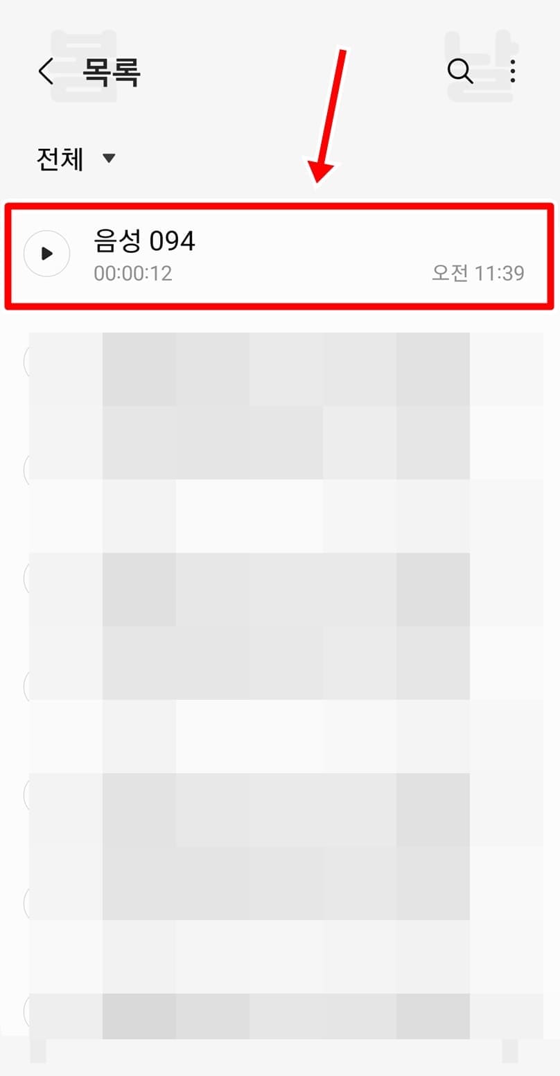 3. 잠금화면에서 녹음한 파일을 찾아서 클릭합니다.