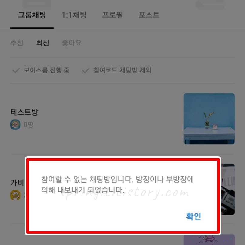 내보내진 상대방은 어떻게 보일까? (+참여 불가능한 채팅방 안내)