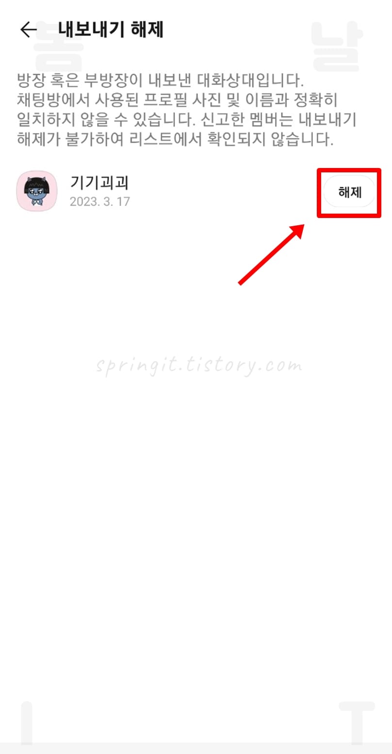 카카오톡 오픈채팅방 내보내기 해제하는 방법