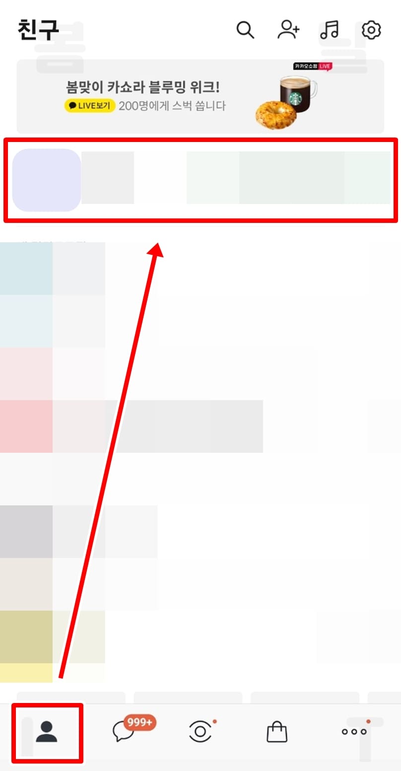 1. 카카오톡 앱을 실행하고 친구목록 상단의 내 프로필을 눌러줍니다.