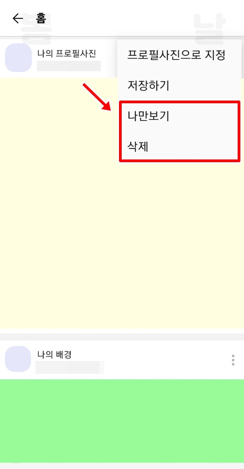 5. 나만보기 또는 삭제를 눌러서 설정합니다.