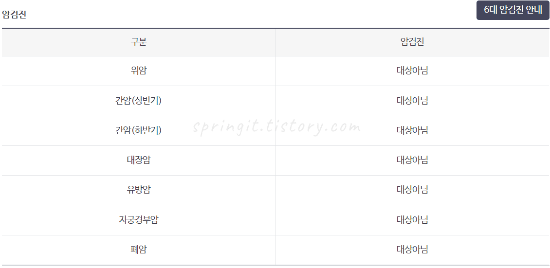 5. 화면 아래에서 암검진 대상자 여부를 확인합니다.