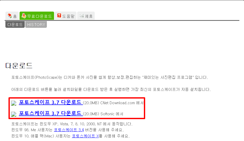 1. 포토스케이프 다운로드 페이지로 이동해주세요.