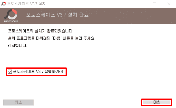 6. 마침을 누르면 프로그램이 실행됩니다.