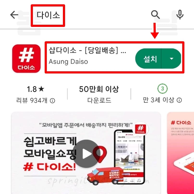 1. 스마트폰에서 샵다이소 앱을 다운로드 받습니다.