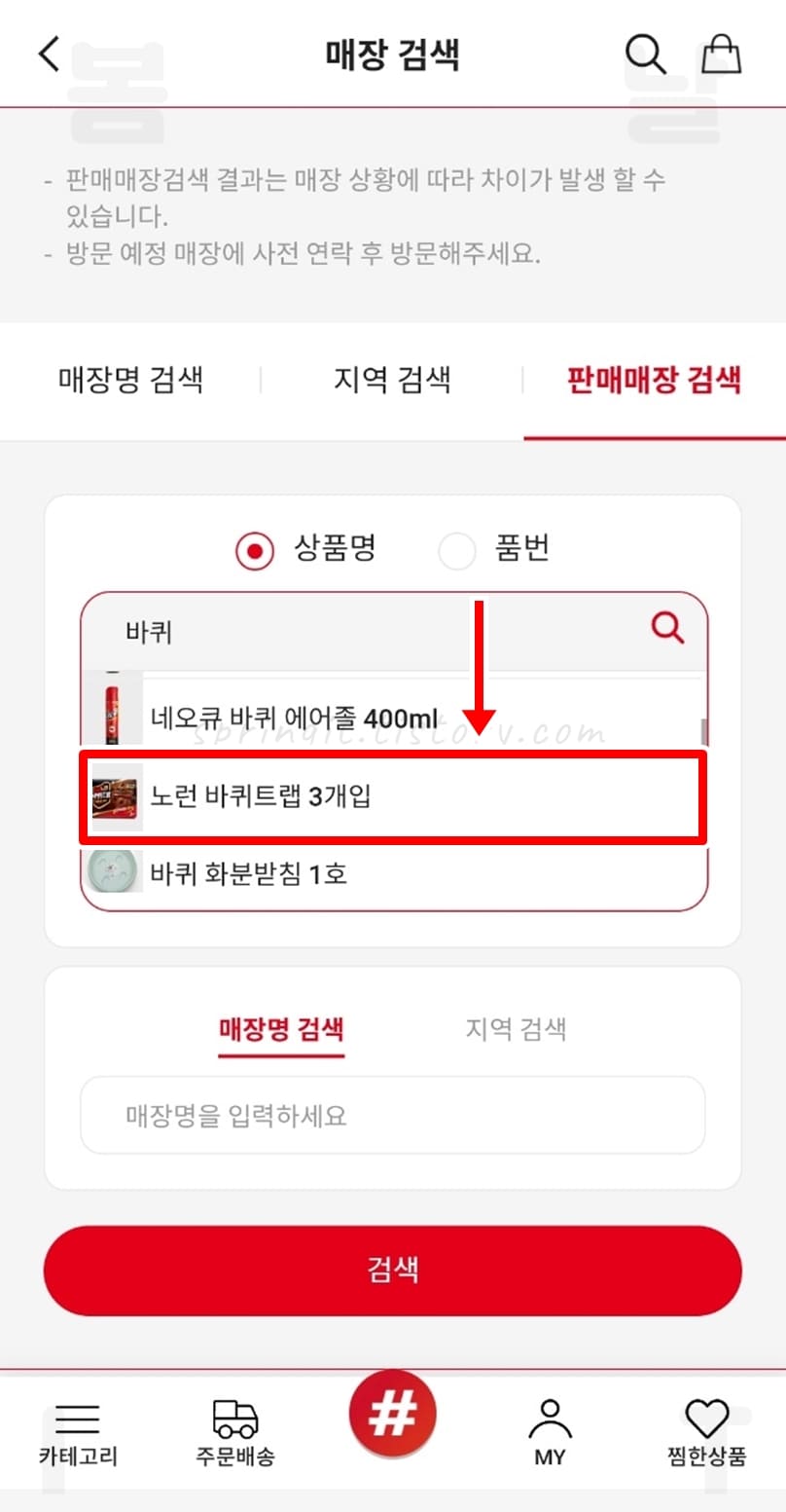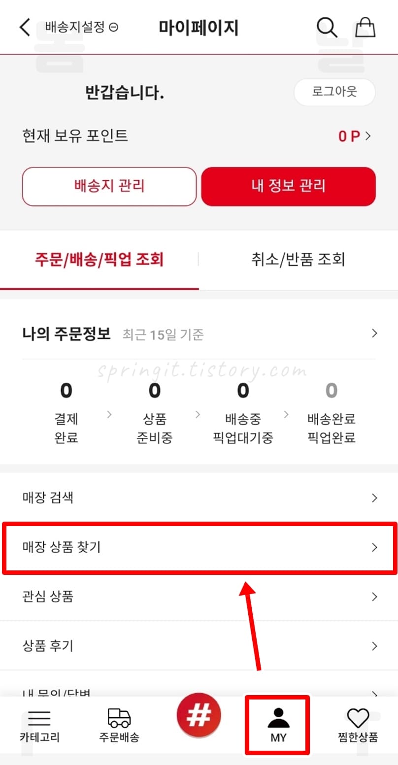 3. MY > 매장 상품 찾기를 클릭합니다.