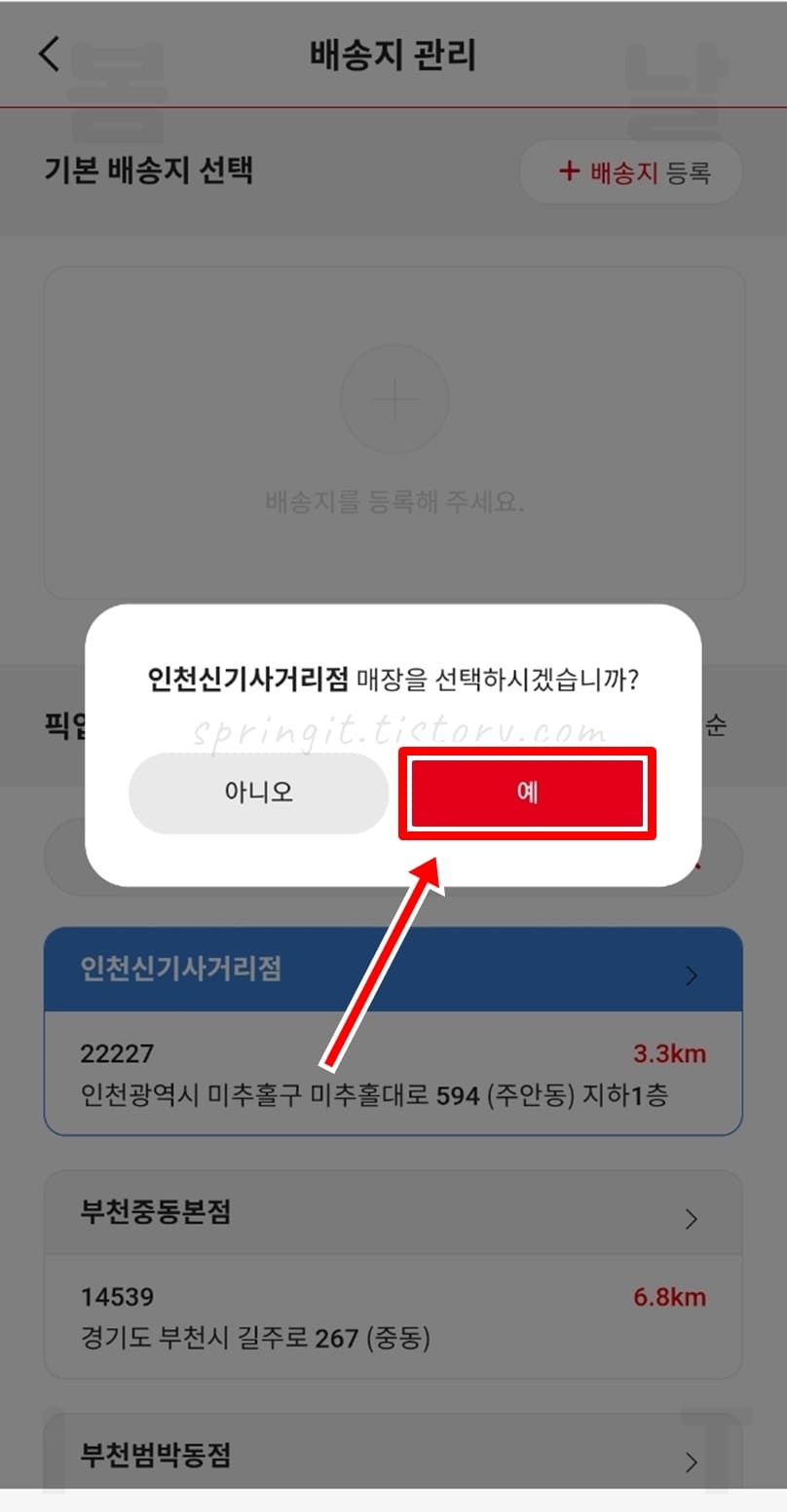 6. 선택 확인창에서 예를 누릅니다.