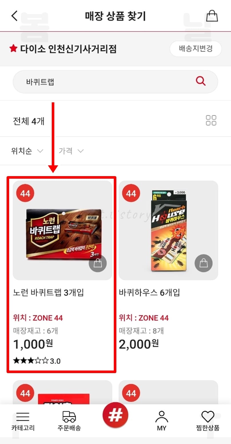 제가 검색한 바퀴트랩의 경우 위치는 ZONE 44, 매장재고는 6개가 있는 것을 확인할 수 있었네요.