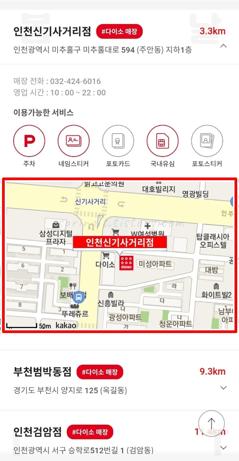 8. 다이소 매장을 클릭하면 매장의 상세정보를 확인할 수 있습니다.