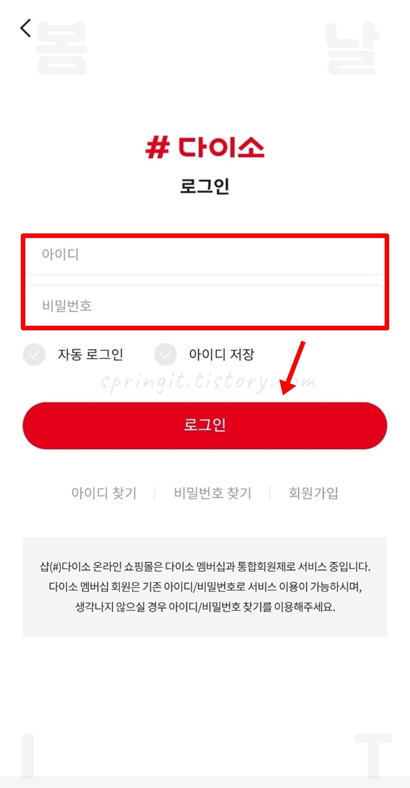 2. 다이소 계정으로 로그인합니다.