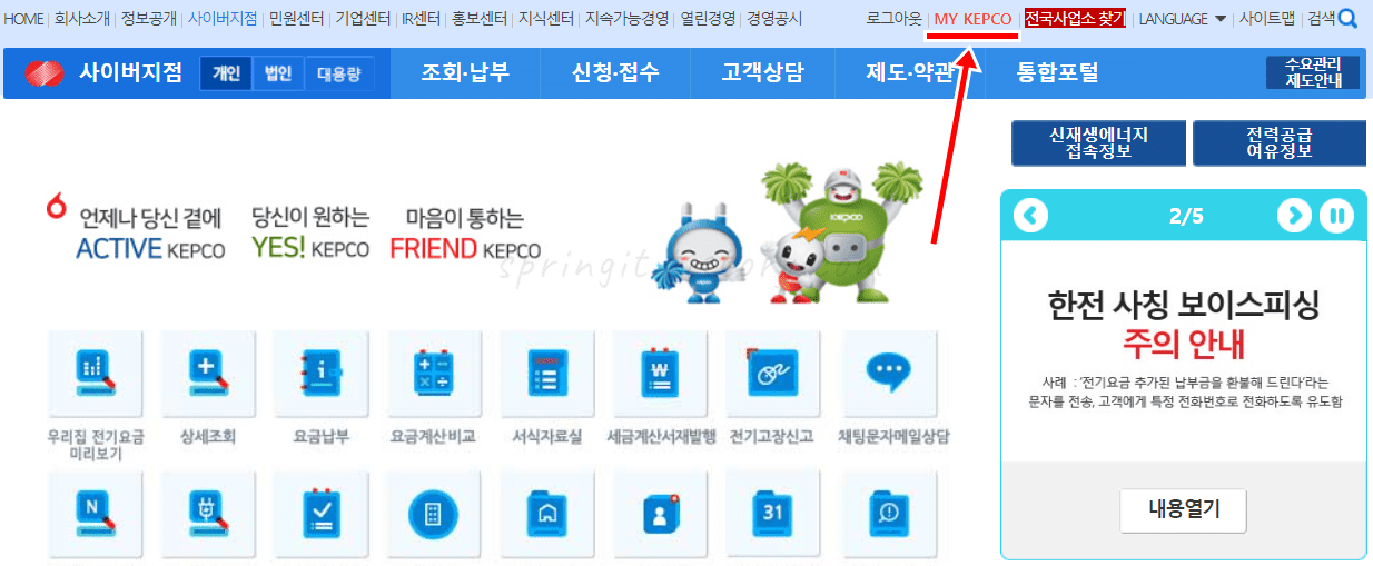 4. 상단 메뉴에서 MY KEPCO를 클릭합니다.