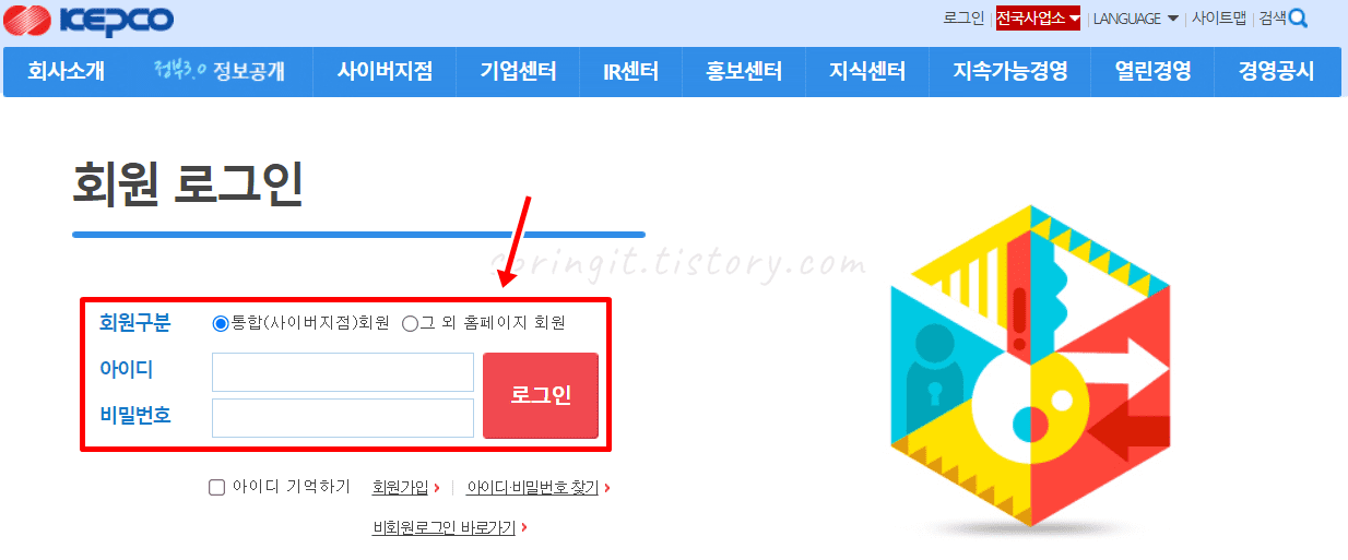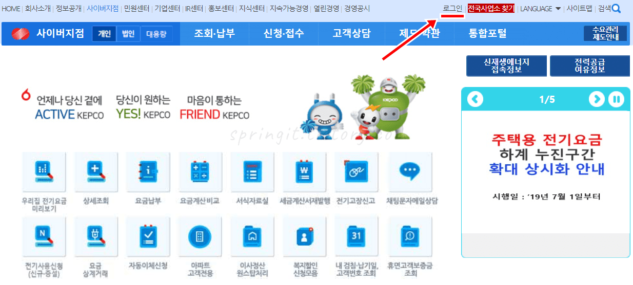 1. 한국전력 사이버지점 사이트에 접속해주세요.