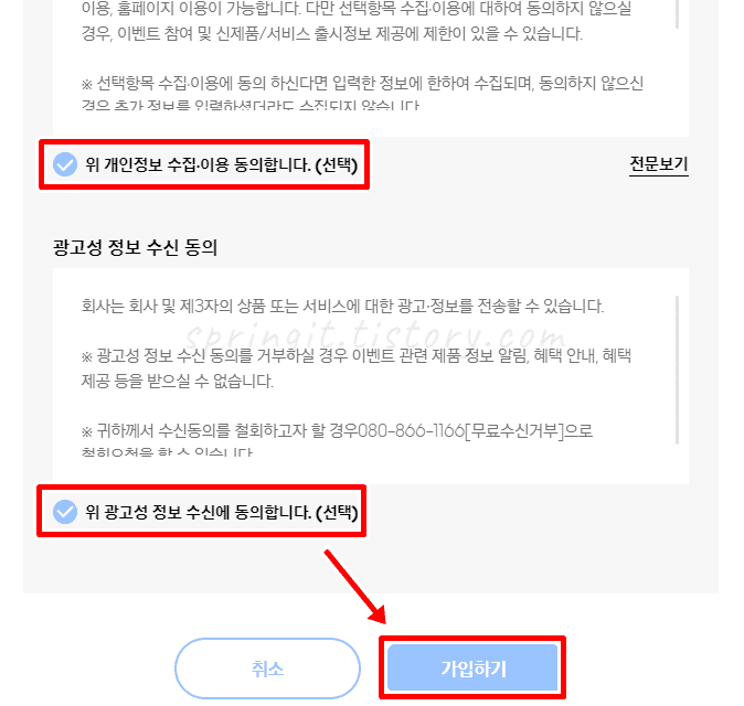15. 필수 약관에 동의한 후 가입하기를 누릅니다.