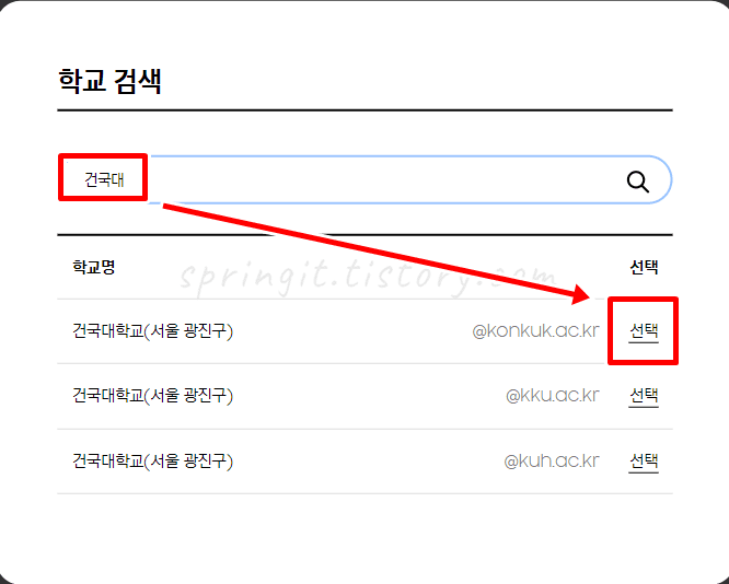 10. 나의 학교를 검색한 후 선택합니다.