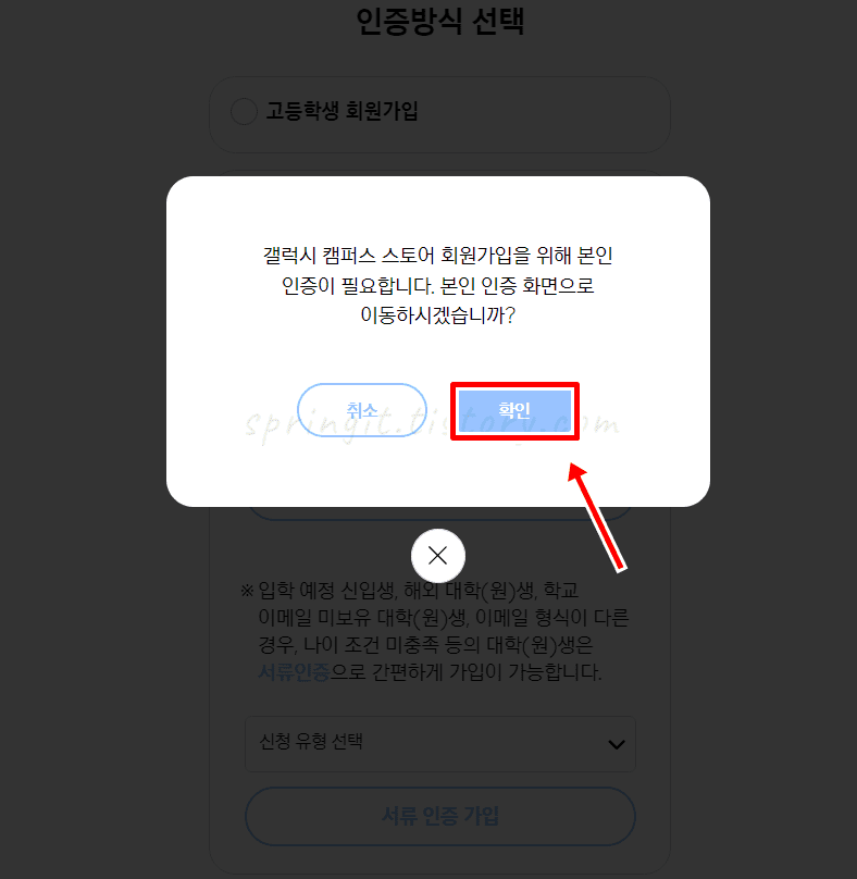 5. 이메일 인증 가입 또는 서류 인증 가입을 선택합니다.