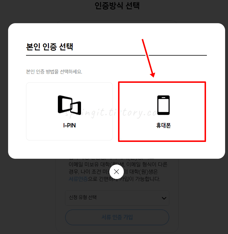 7. 아이핀 또는 휴대폰을 선택합니다.