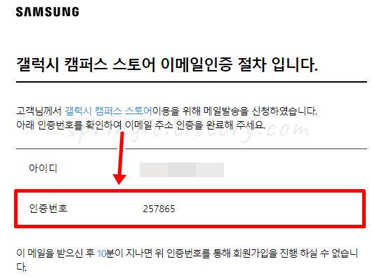 13. 대학교 이메일에 로그인 후 수신된 갤캠스의 인증번호를 확인합니다.
