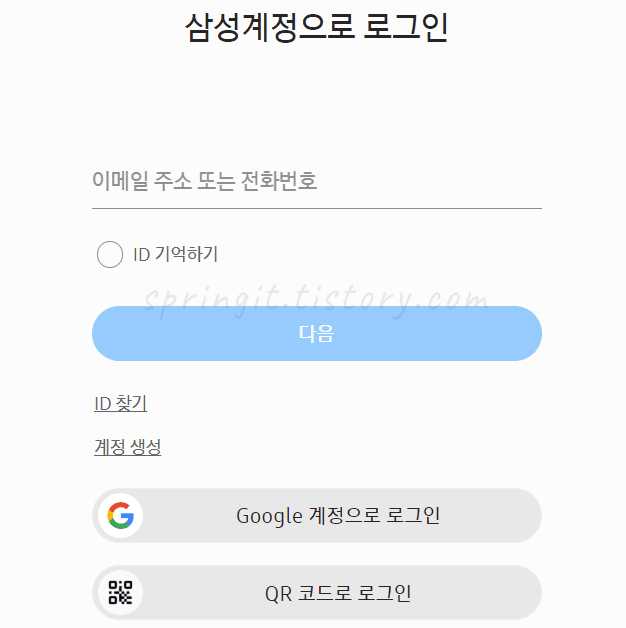 2. 본인의 삼성계정으로 로그인합니다.