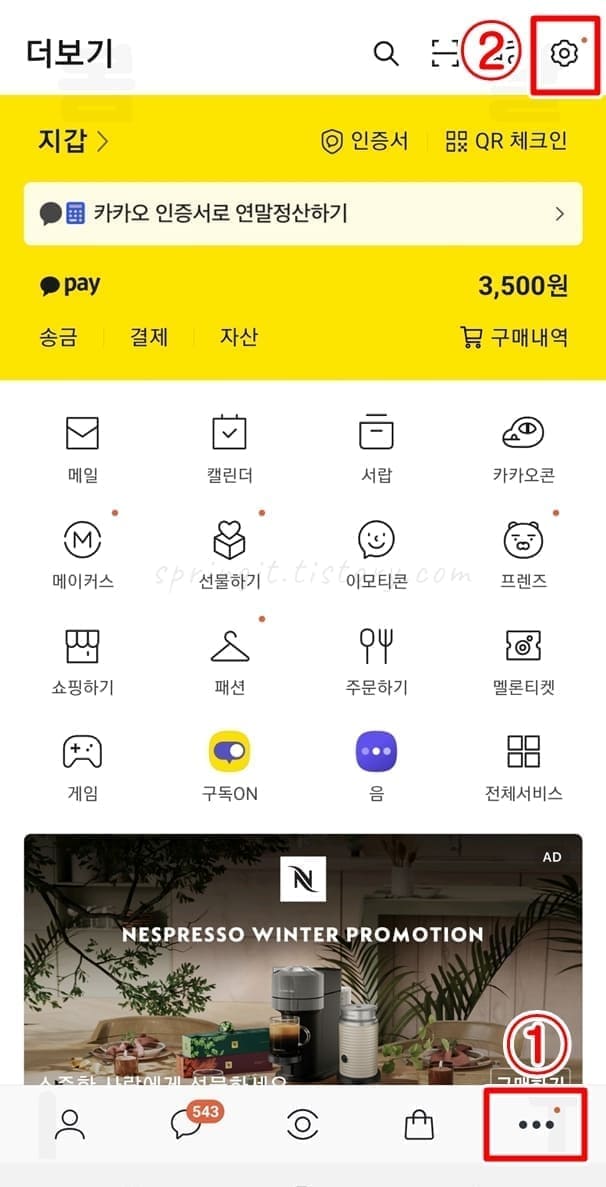 2. 더보기 메뉴에서 톱니바퀴 설정을 클릭합니다.