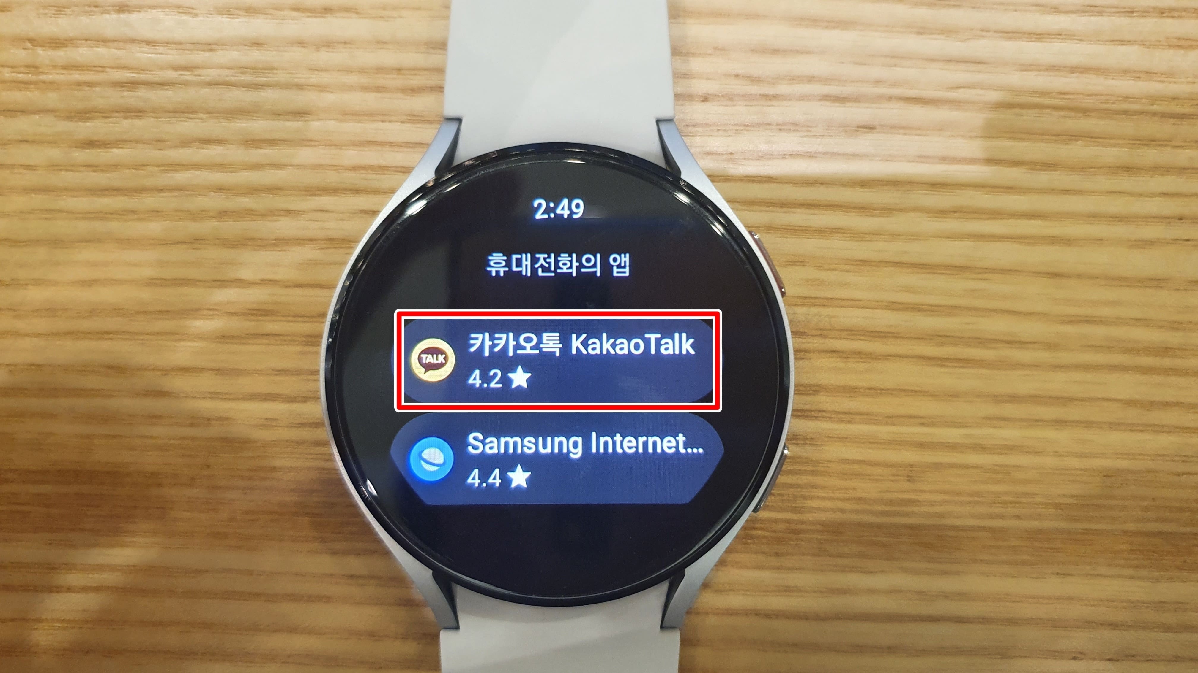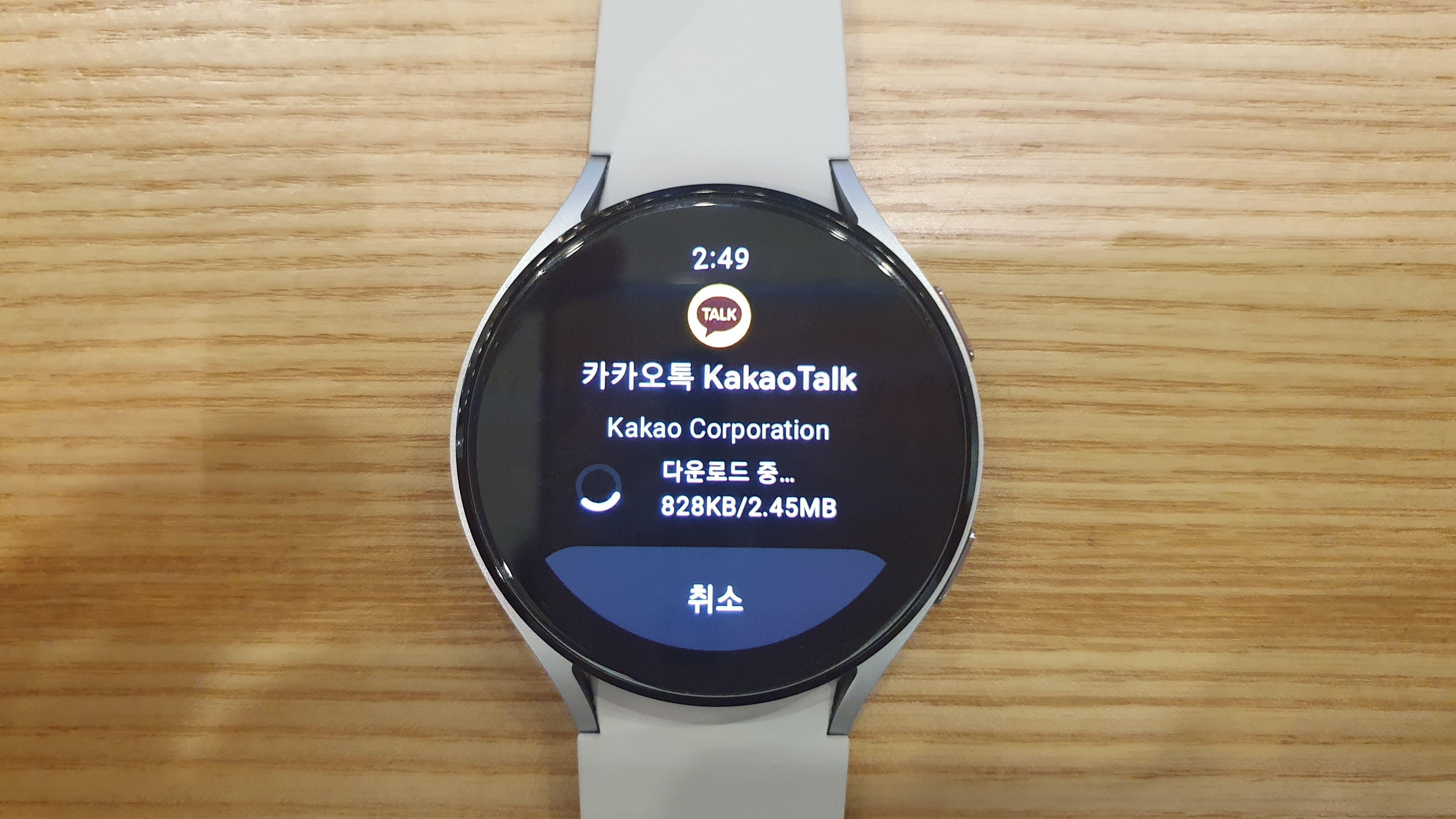 13. 갤럭시워치에 카톡이 다운로드될 때까지 기다립니다.