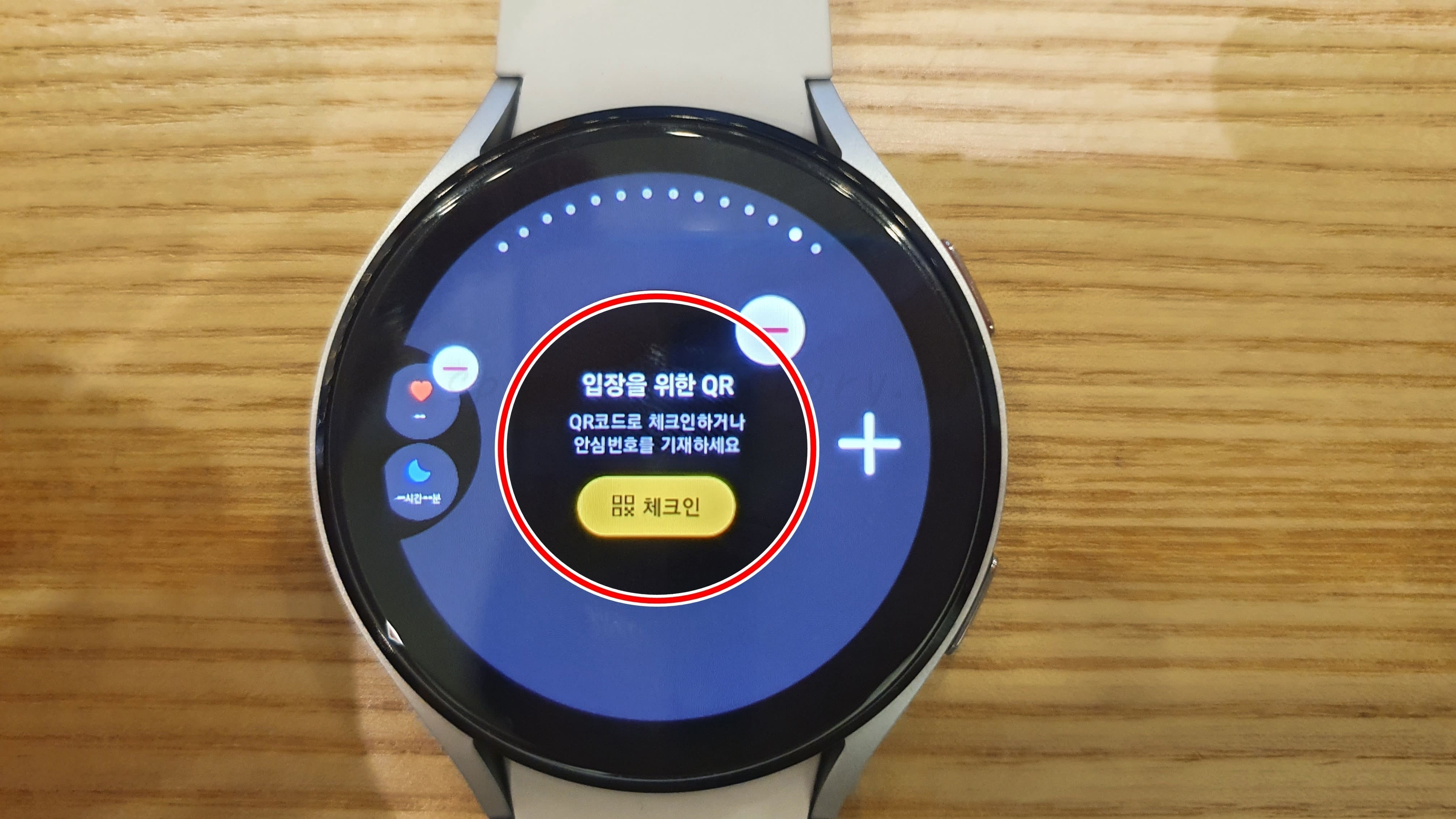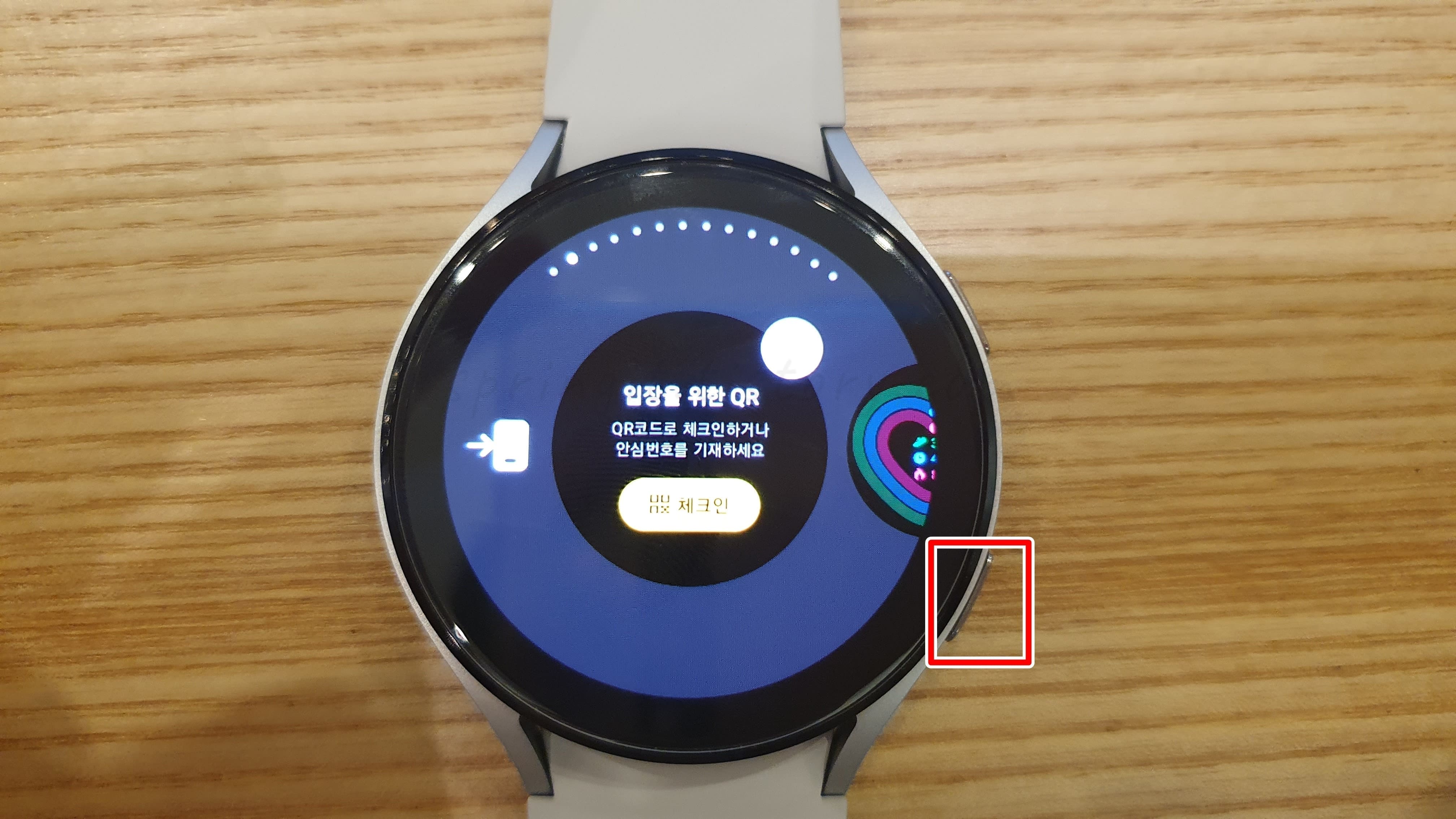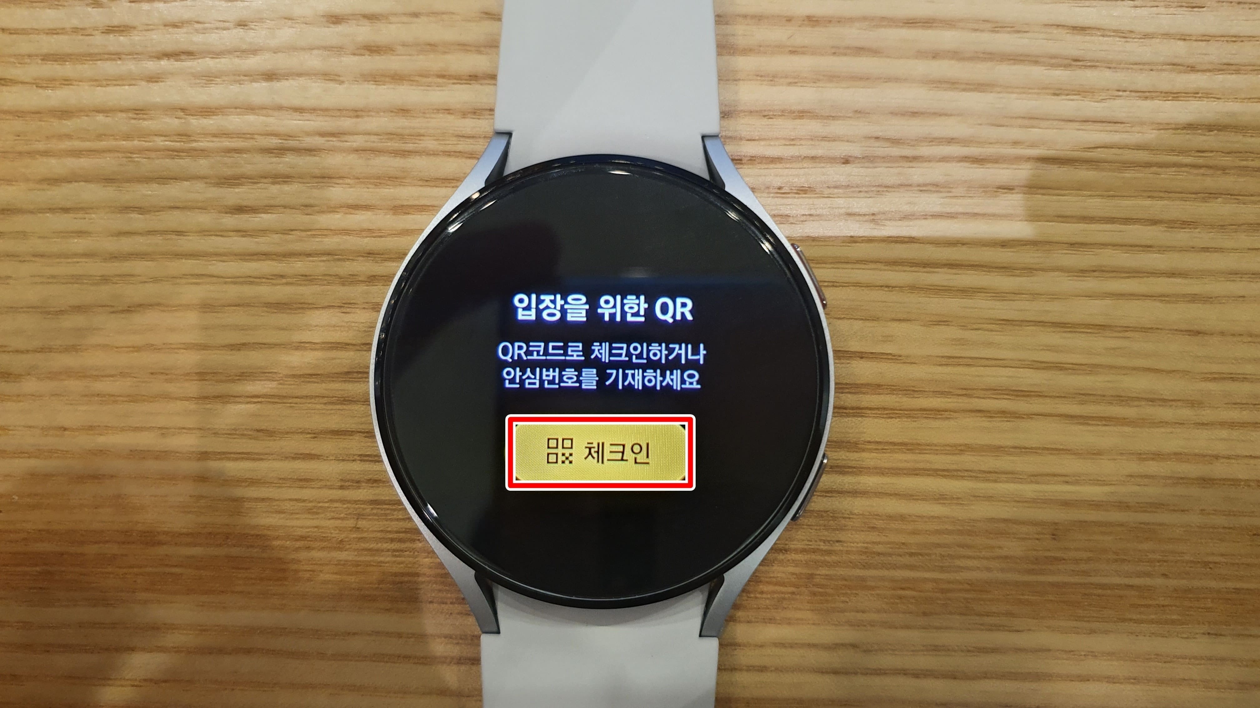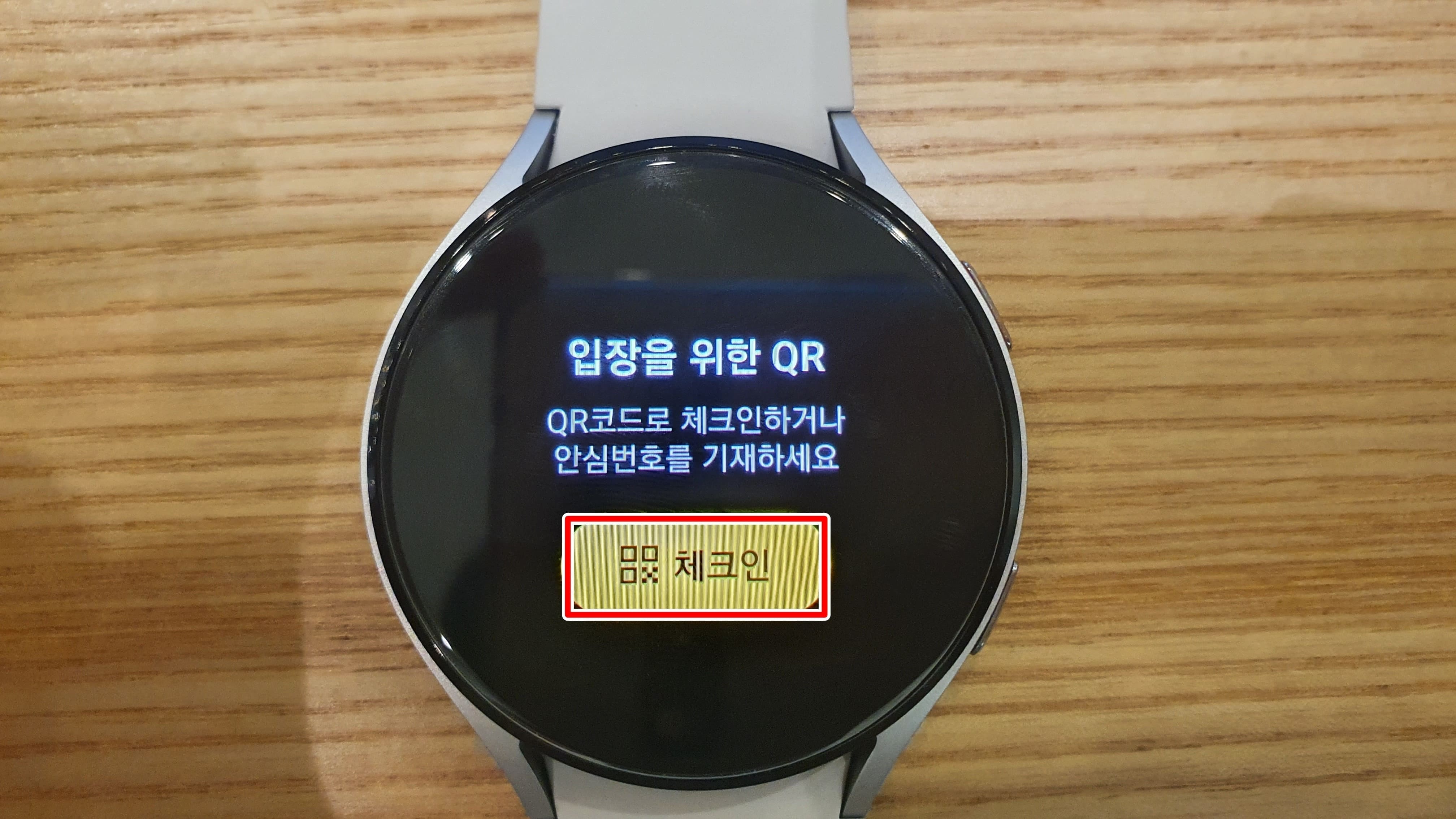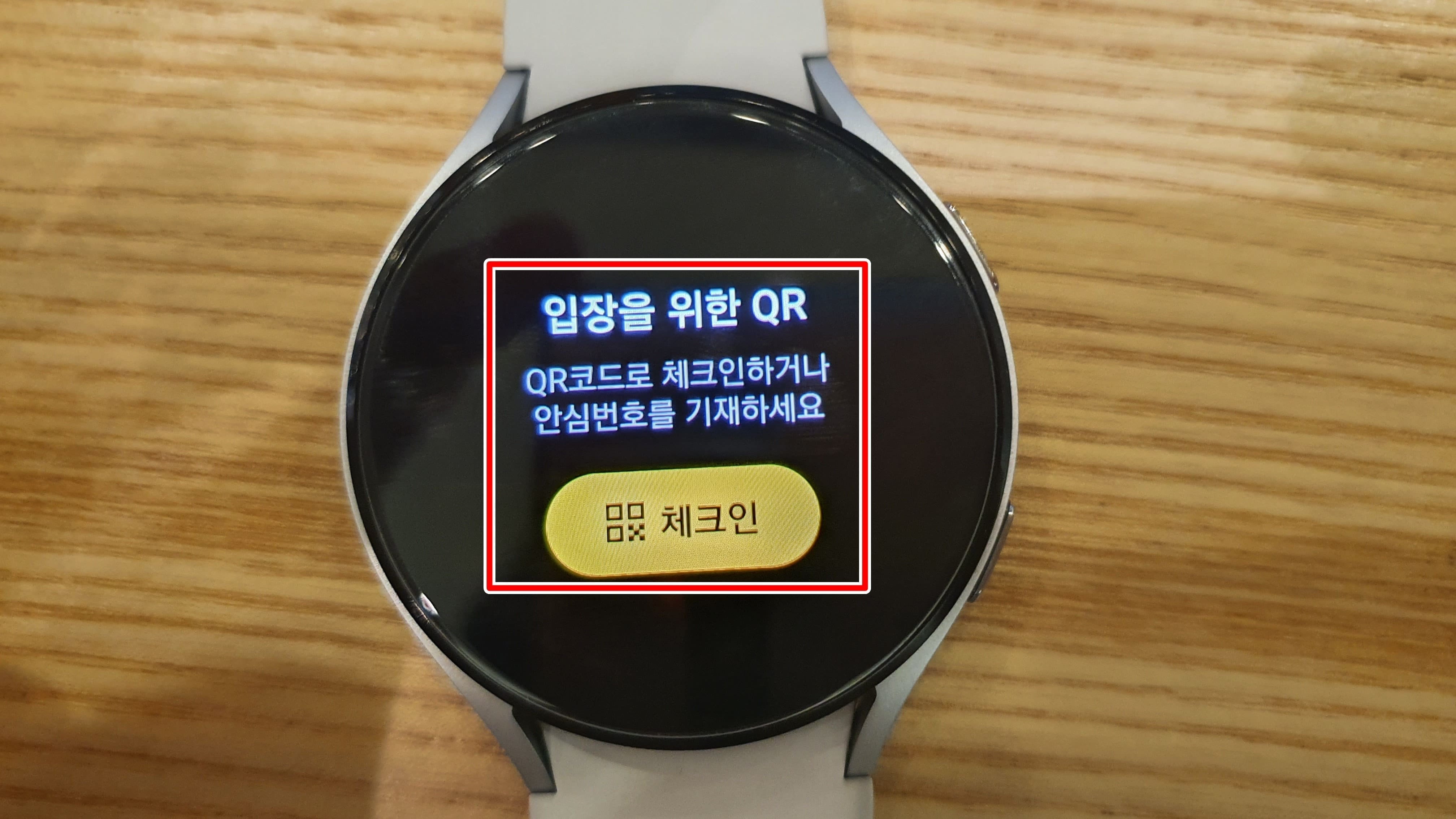 18. 갤럭시워치에 체크인 QR코드가 표시됩니다.