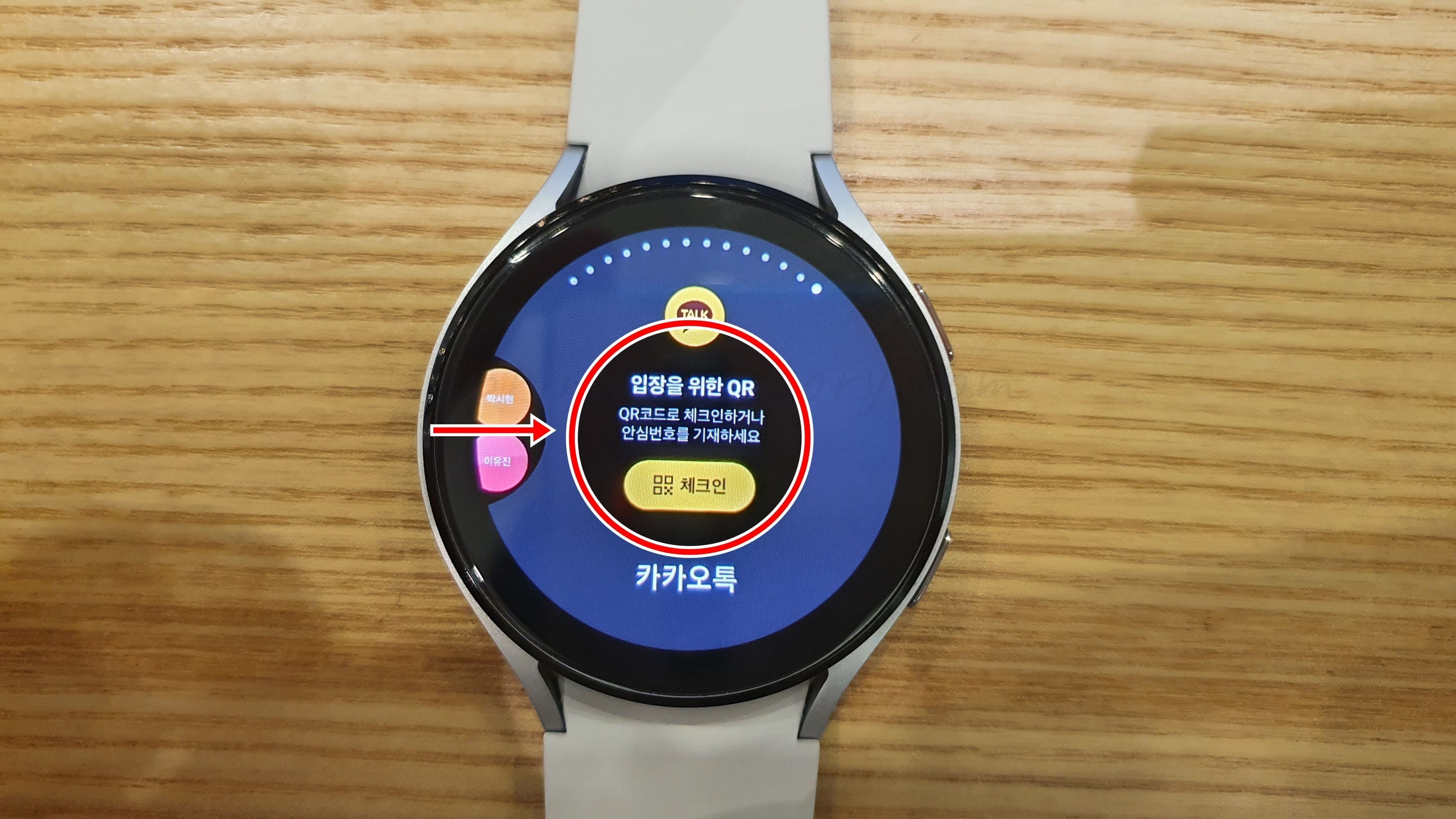 갤럭시 워치에서 카톡 QR코드 체크인하기