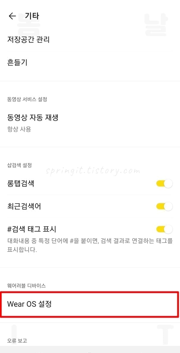 중요★-만약 위 카톡 메뉴에서 Wear OS를 찾을 수 없다면 스마트폰에서 카카오톡 어플을 최신 버전으로 업데이트하시면 됩니다.