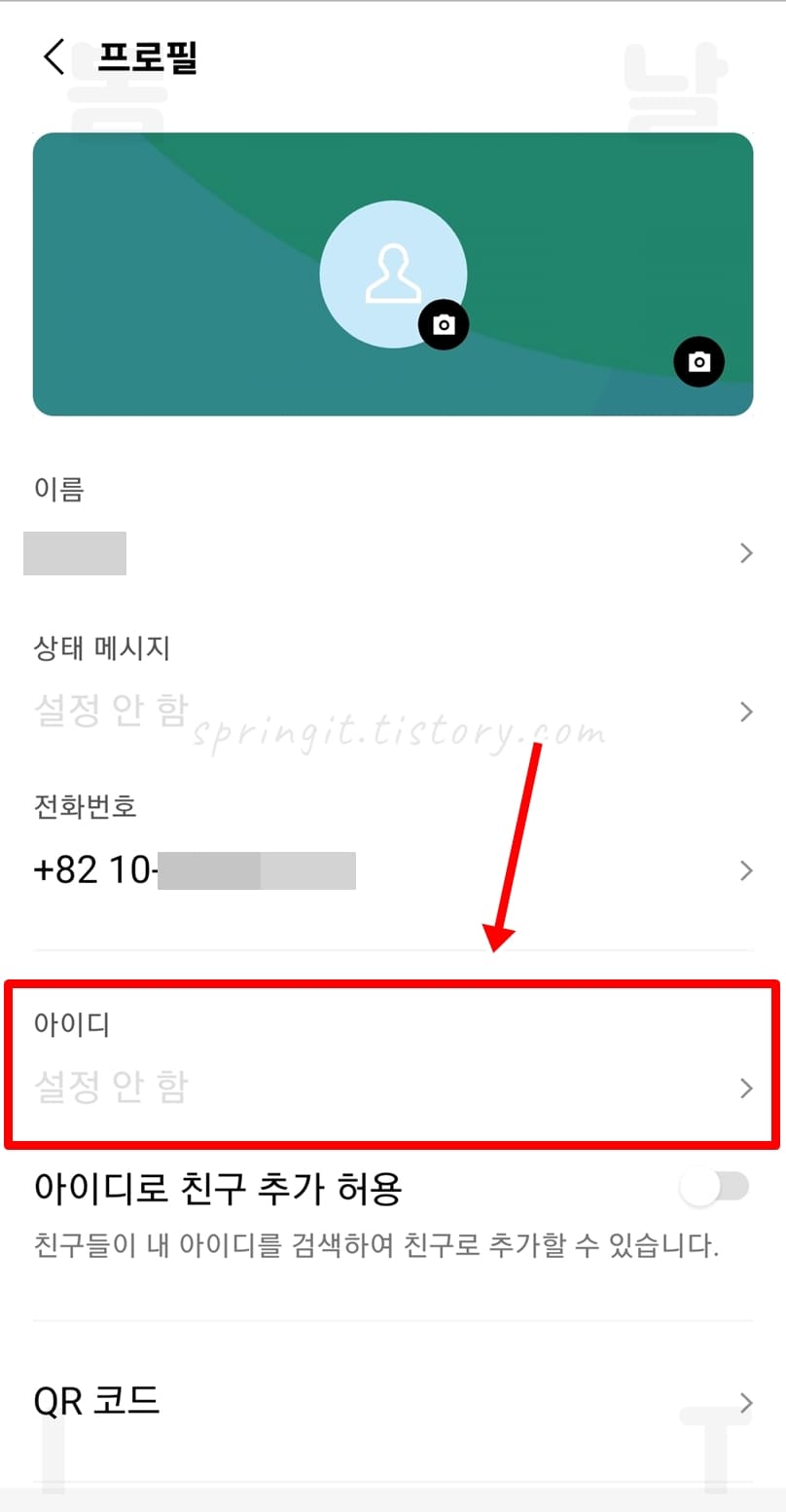 2) 아이디로 친구 추가 허용 끄기