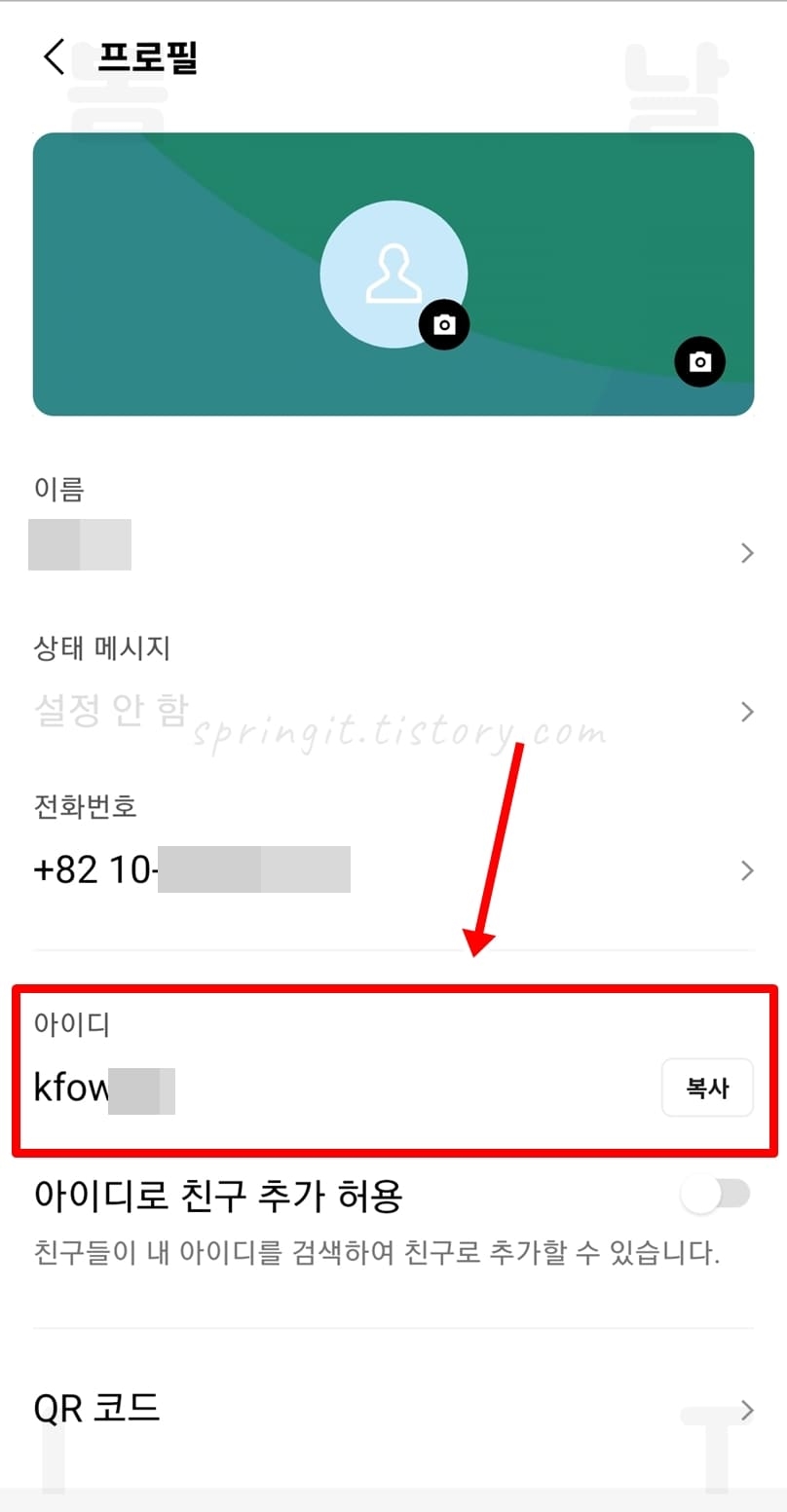 4. 나의 라인 아이디를 확인할 수 있습니다.