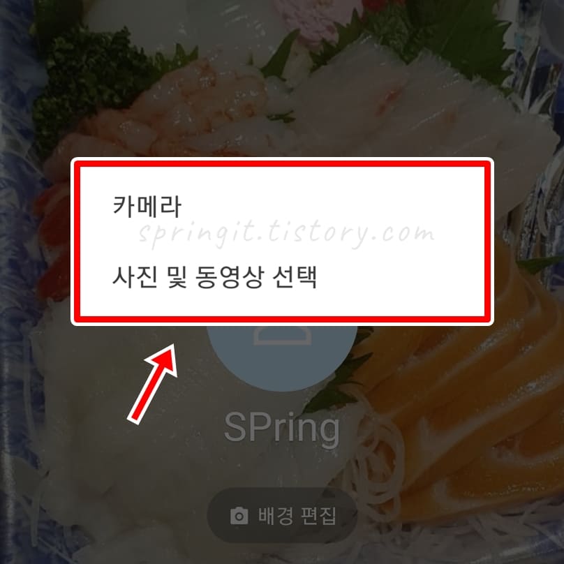 6. 1번에서 다운로드 받은 기본 라인 프로필 배경화면을 선택합니다.