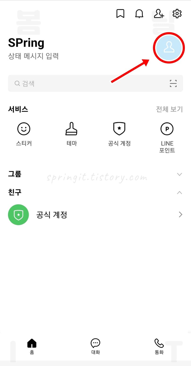 2. 라인 앱을 실행하고 내 프로필을 클릭합니다.