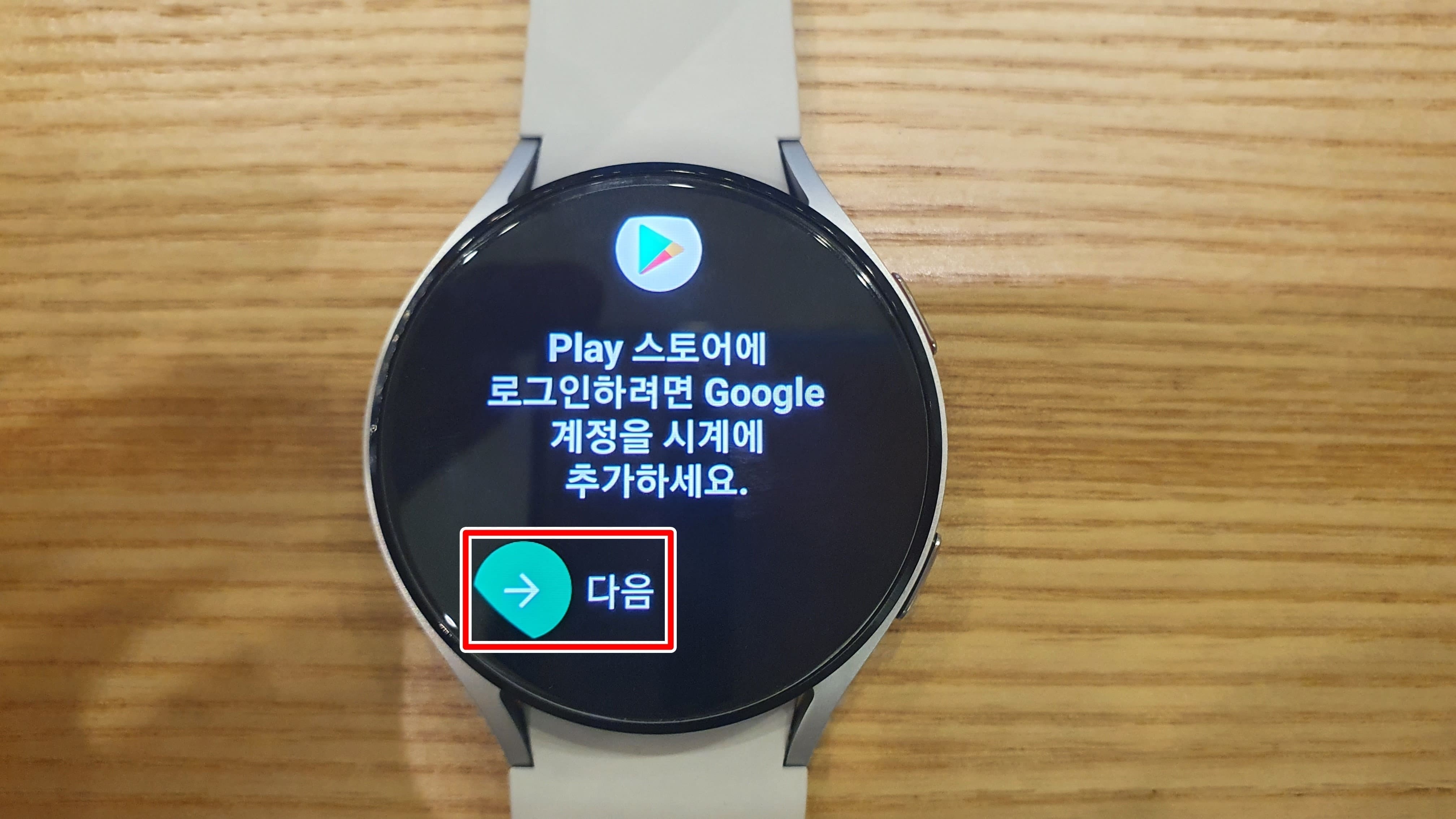 이 과정은 갤럭시워치에서 구글 계정이 로그인되지 않았을 때 플레이 스토어를 사용하기 위해서 로그인해주는 절차입니다. 갤럭시워치와 스마트폰을 처음 연결했을 때 구글 계정 로그인을 하셨던 분은 넘어가주시면 됩니다.