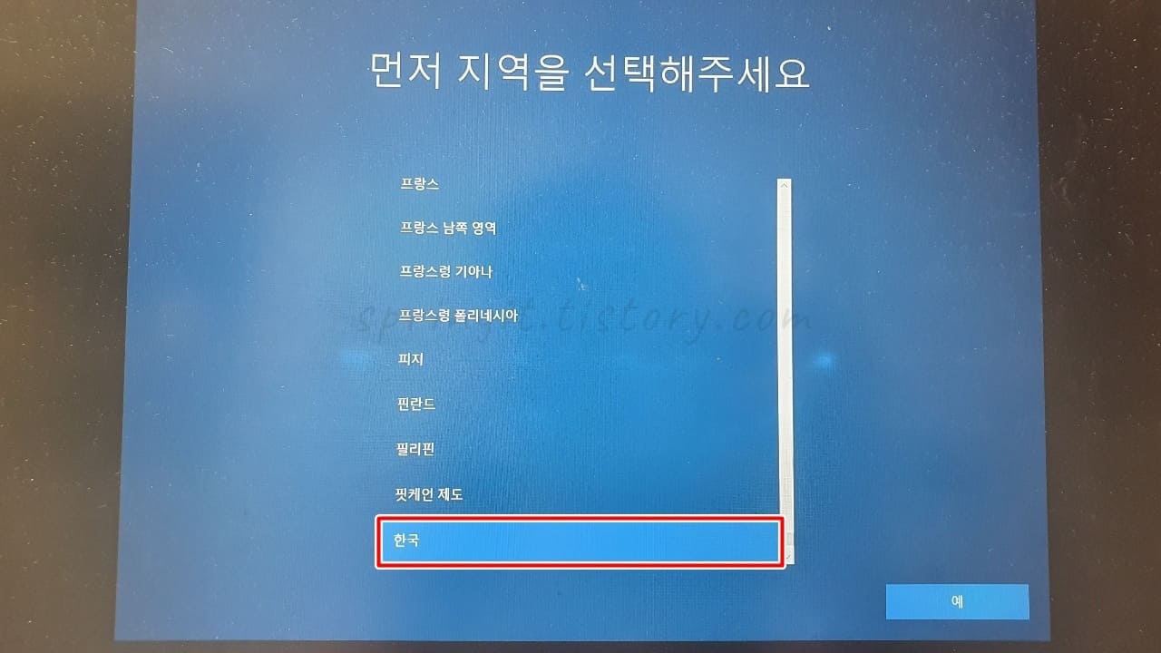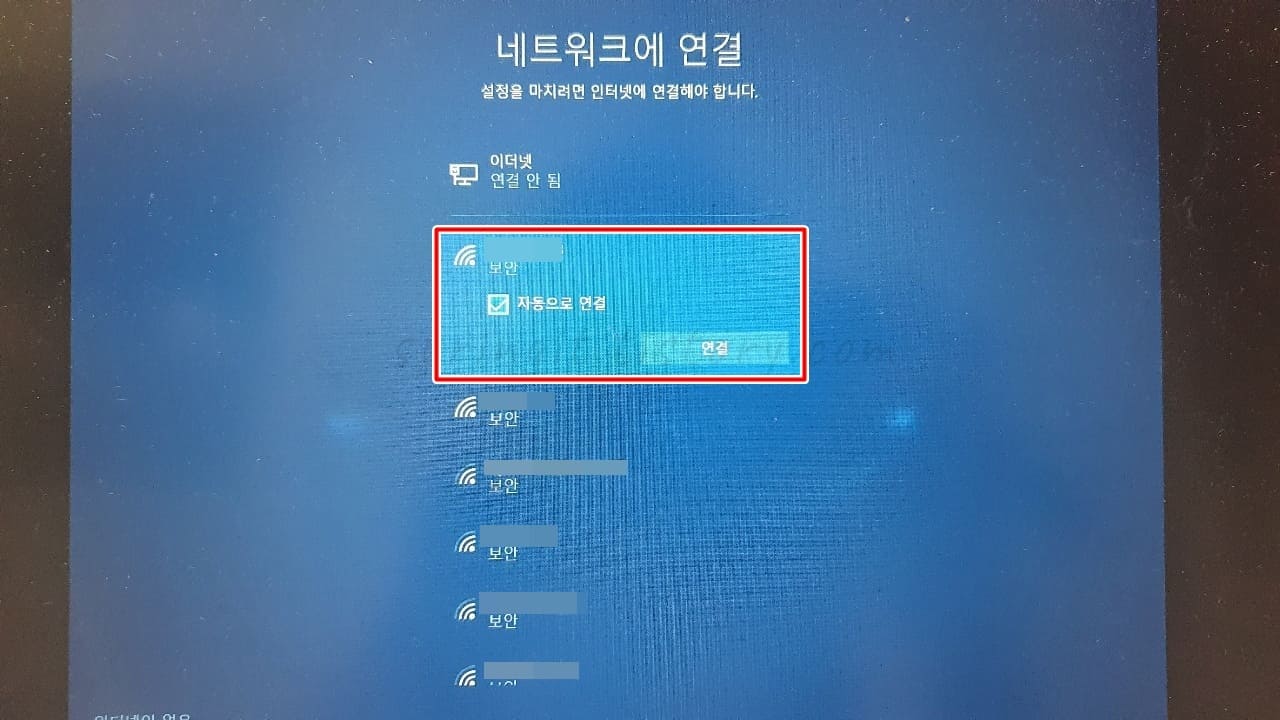 인터넷이 랜선으로 연결되어 있다면 스킵되는 페이지입니다. 노트북인 경우 나오는 페이지인데 윈도우10 업데이트도 진행할겸 와이파이를 연결해주시면 좋습니다.