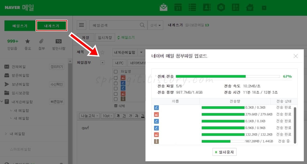 네이버에 로그인을 한후에 [메일]을 클릭합니다. [내게쓰기]를 누르고 압축파일을 업로드해주신 후 보내시면 됩니다. 그러면 나의 중요한 파일들은 압축파일형태로 [내게쓴메일함]에 안전하게 보관되게 됩니다. 이제 윈도우10 컴퓨터 초기화 방법에 따라서 포맷해주신 후 백업해둔 내게쓴메일함의 압축파일을 다운로드 받아주시면 되겠죠!