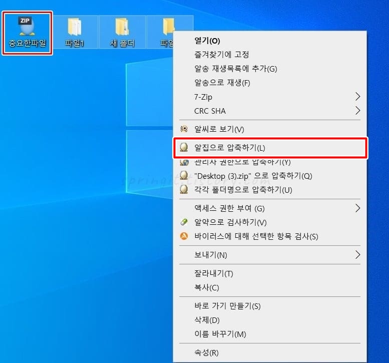 컴퓨터를 초기화 하기 전에 중요한 파일들을 모두 마우스로 드래구 한 후 [우클릭]합니다. 뜬 창에서 [압축하기]를 눌러줍시다. 이렇게 용량이 높은 파일들을 백업하기 좋도록 하나의 압축파일로 만들어주세요.
