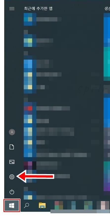 1. 윈도우10 컴퓨터에서 시작 메뉴 버튼을 클릭합니다.