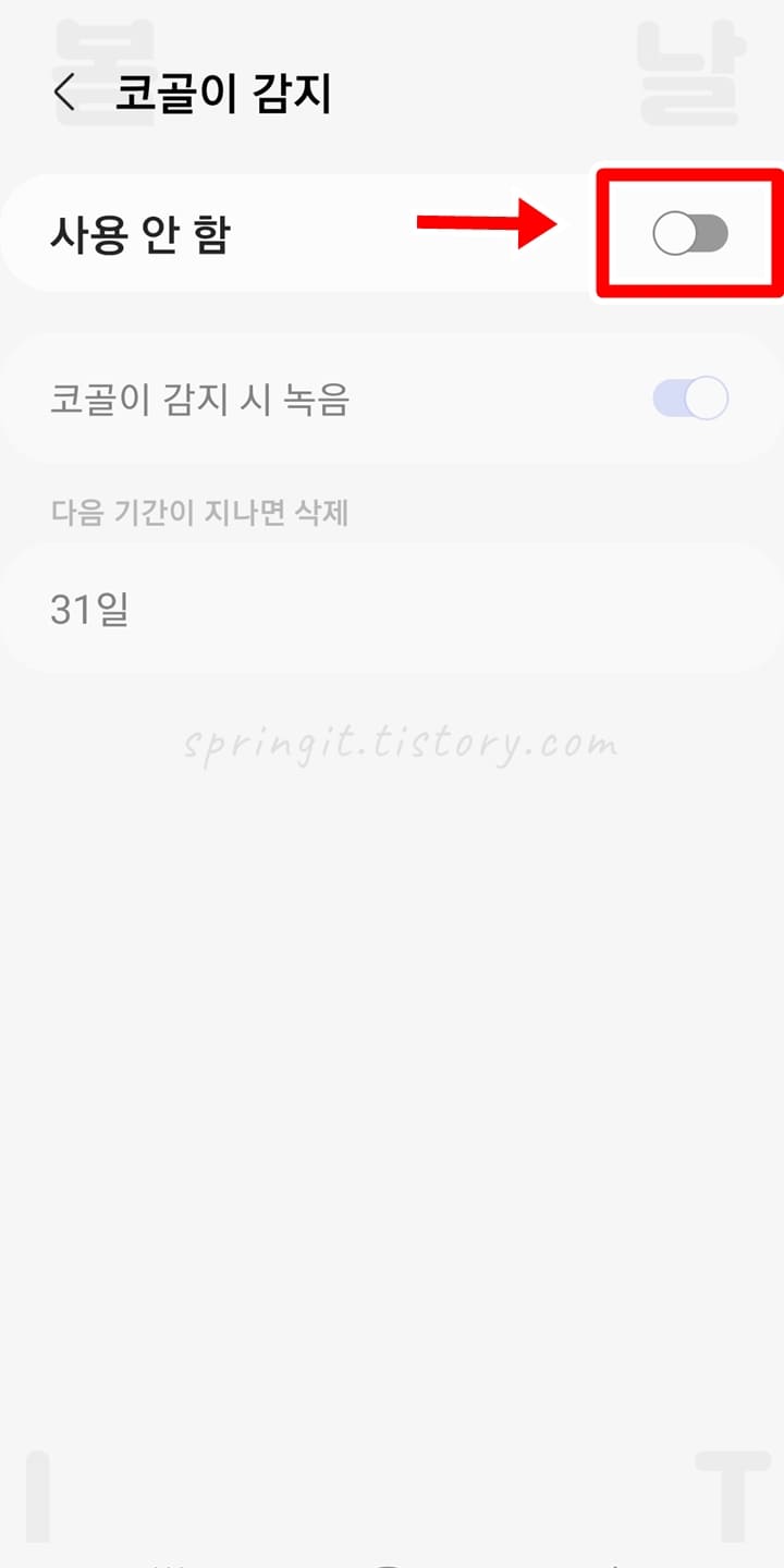 9. 스마트폰에서 실행된 코골이 감지 설정 화면에서 기능을 활성화합니다.
