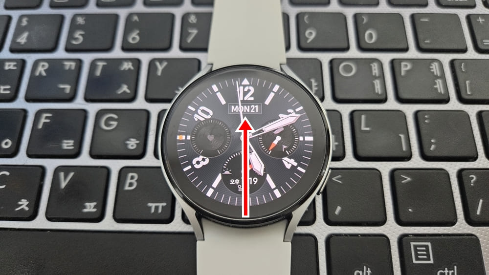1. 갤럭시 워치 홈화면을 아래에서 위 방향으로 끌어 올립니다.